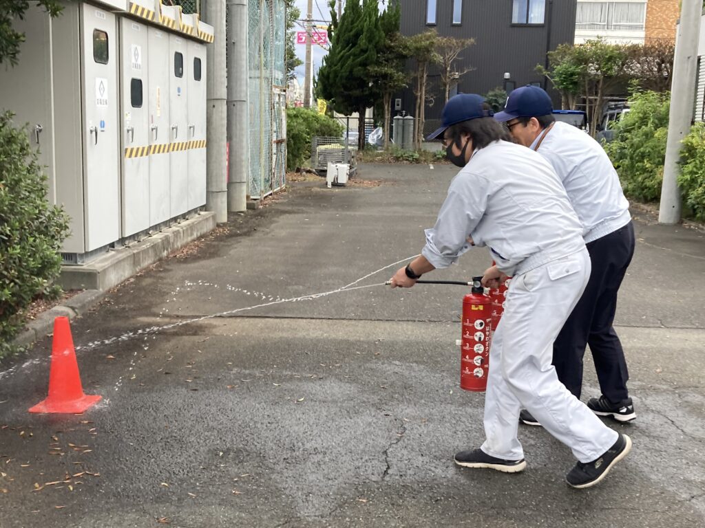 訓練には防火担当者が参加し、実際の消火器と同じ動作が出来る訓練用の水消火器を使用した訓練を行いました。